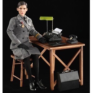 | Features 1 One authentic headsculpt 2 One New female body 3 One pair of relaxed palms 4 One pair of palms for holding gun 5 One palm for holding pen Outfits 6 One side cap 7 One set female uniform (Tunic and skirt) 8 One shirt 9 One greatcoat 10 One pair of silk stockings 11 One tie 12 One scarf 13 One pair of gloves 14 One pair of shoes Accessories 15 One realistic typewriter which is made of over 200 parts 16 One set of delicate desk and stool 17 One desk lamp that can be turned on 18 One beautiful typewriter case 19 One telephone 20 One leather handbag 21 One clip board with pen 22 One cigeratte holder with two cigerattes Weapon 19 One pistol with silencer Insignia 20 Three insignia flash 21 Three breast eagle 22 Two cuff titles |